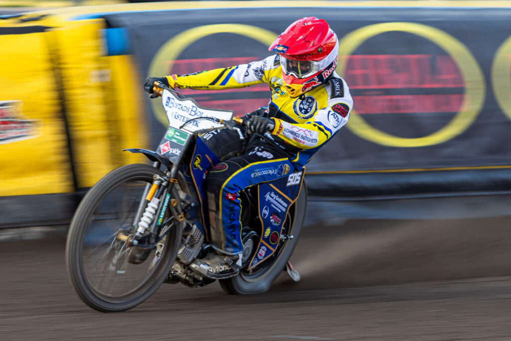 Storpublik på OnePartnerGroup Arena och Smålandsderby under tisdagens afton. Lejonen tog ledningen redan i det första heatet och släppte aldrig in Dackarna i matchen.